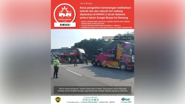Meanwhile, the Malaysian Highway Authority (LLM), via X, said that the right and middle lanes, northbound, remained closed as of 9.23 am, with traffic reported to be at a standstill for nearly five kilometres.