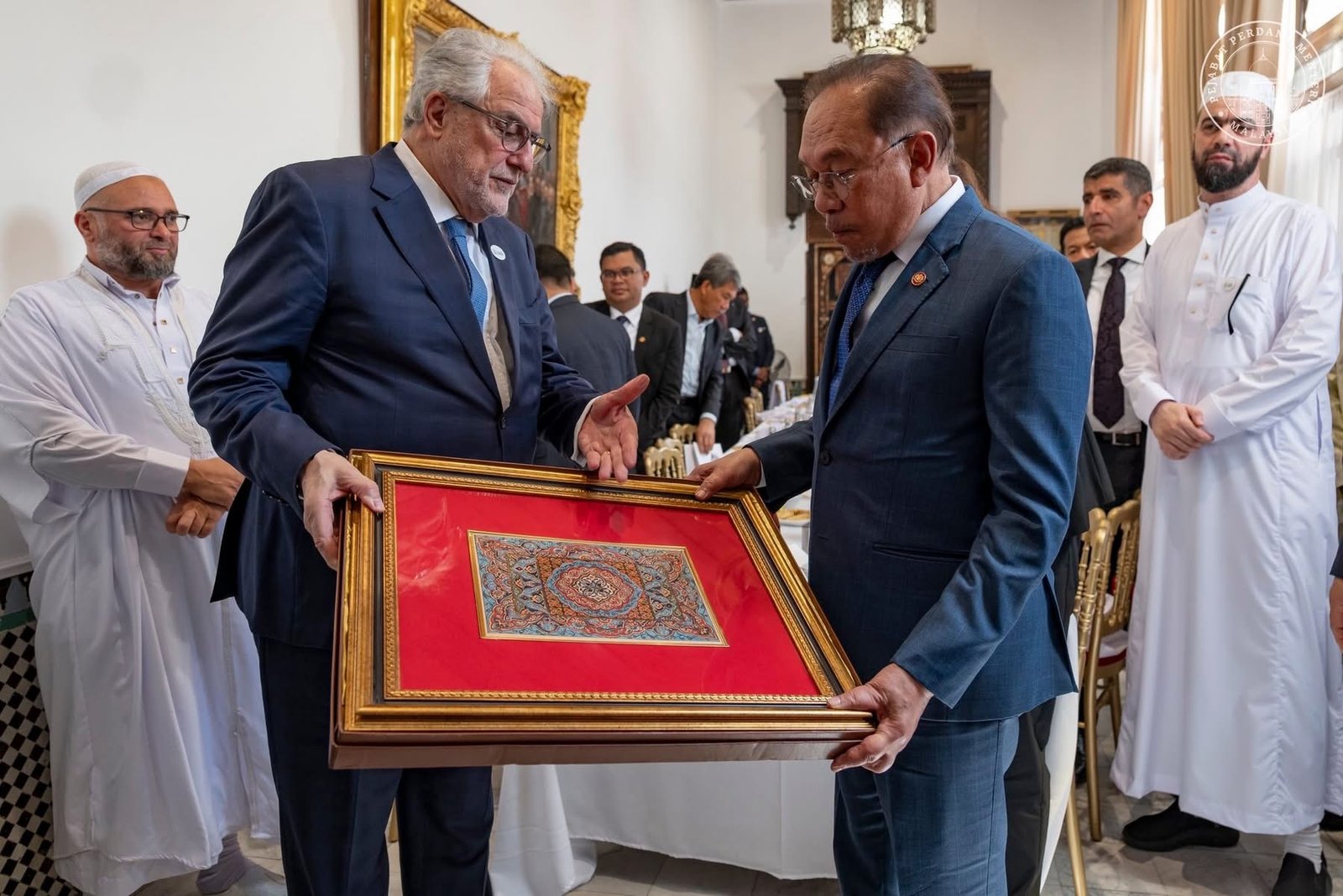 “Sebagai tanda ukhuwah, saya menyampaikan sumbangan senaskhah al-Quran cetakan khas dan 10 naskhah lagi dalam terjemahan bahasa Perancis.