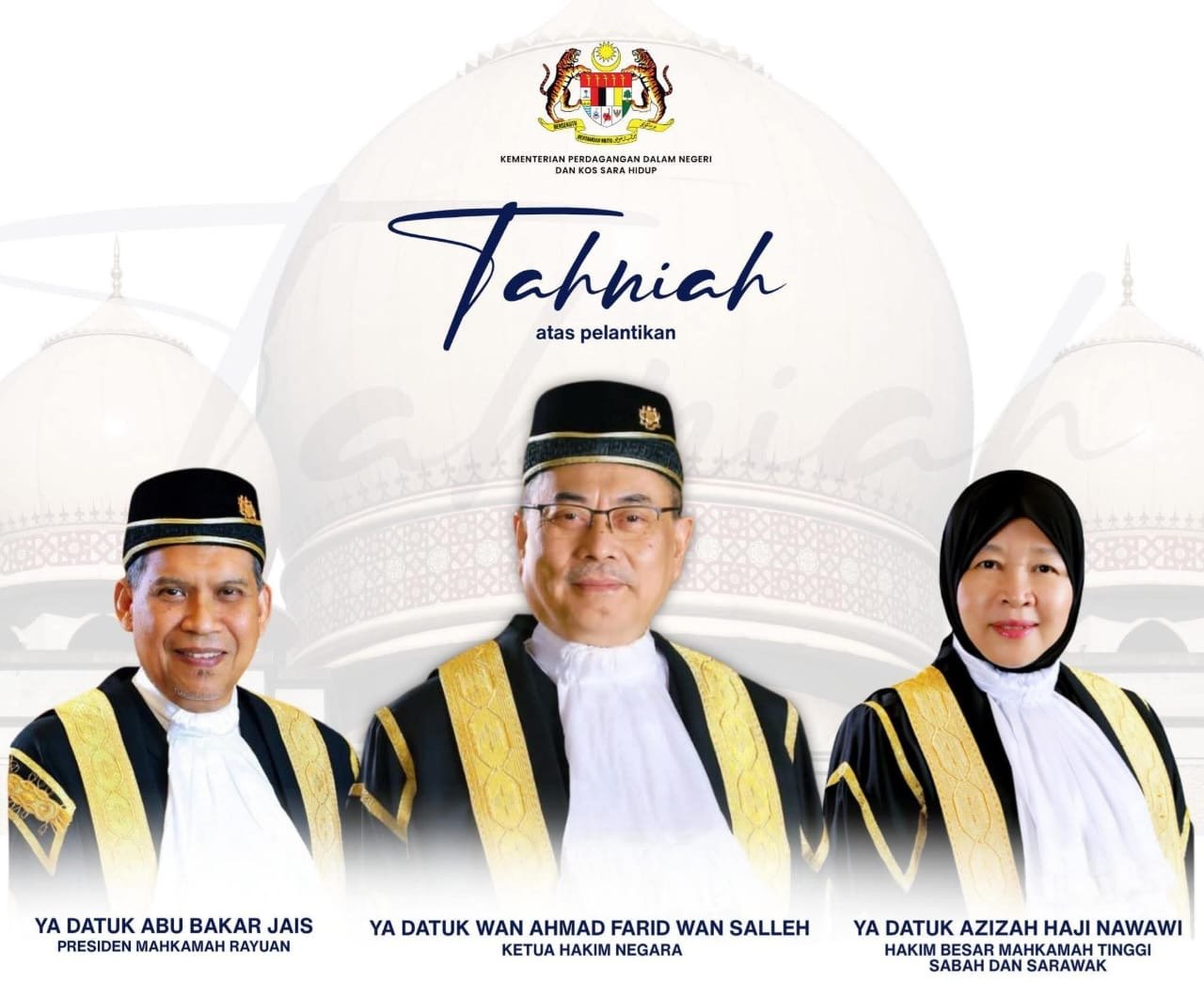 “Dimaklumkan bahawa berdasarkan Fasal (1) Perkara 122B Perlembagaan Persekutuan, Seri Paduka Baginda Yang di-Pertuan Agong atas nasihat Perdana Menteri dan selepas berunding dengan Majlis Raja-Raja telah memperkenankan pelantikan Datuk Wan Ahmad Farid Wan Salleh sebagai Ketua Hakim Negara Mahkamah Persekutuan,” kata kenyataan itu sebentar tadi.